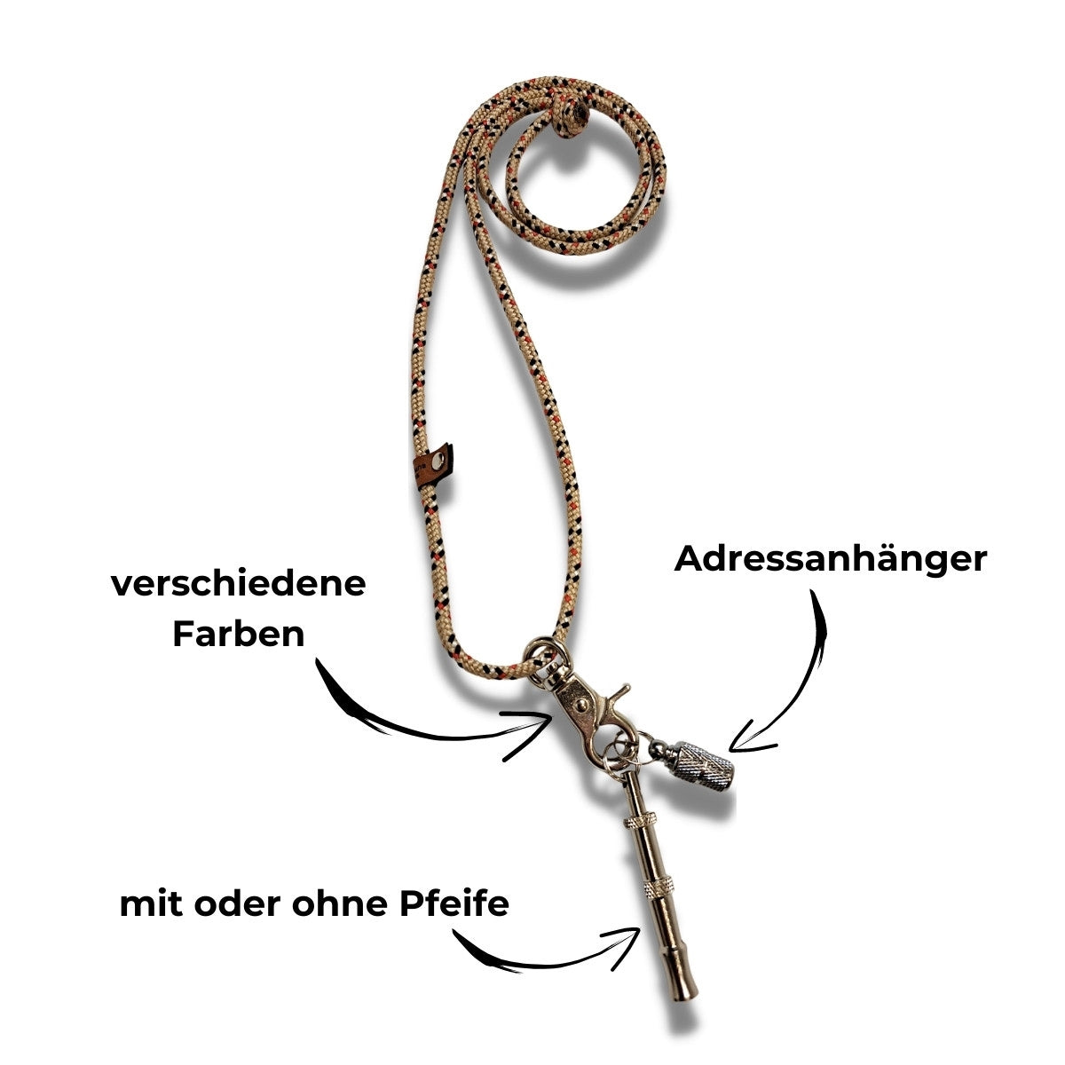 A chic necklace for your dog training, optionally available with a dog whistle.