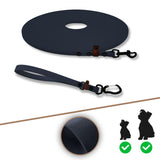 Das ist abhängig von deinem Trainingsziel bzw. deines persönlichen Geschmacks & der Verwendung der Leine. Bist du sehr motiviert & trainierst oft mit deinem Hund an der Leine, dann empfehlen wir eine maximale Leinenlänge von 200cm. Solltest du dir die Leine umhängen wollen, dann empfehlen wir je nach Körperbau eine Länge zwischen 240cm - 300cm. Für stark an der Leine ziehende Hunde empfehlen wir 180cm-200cm.