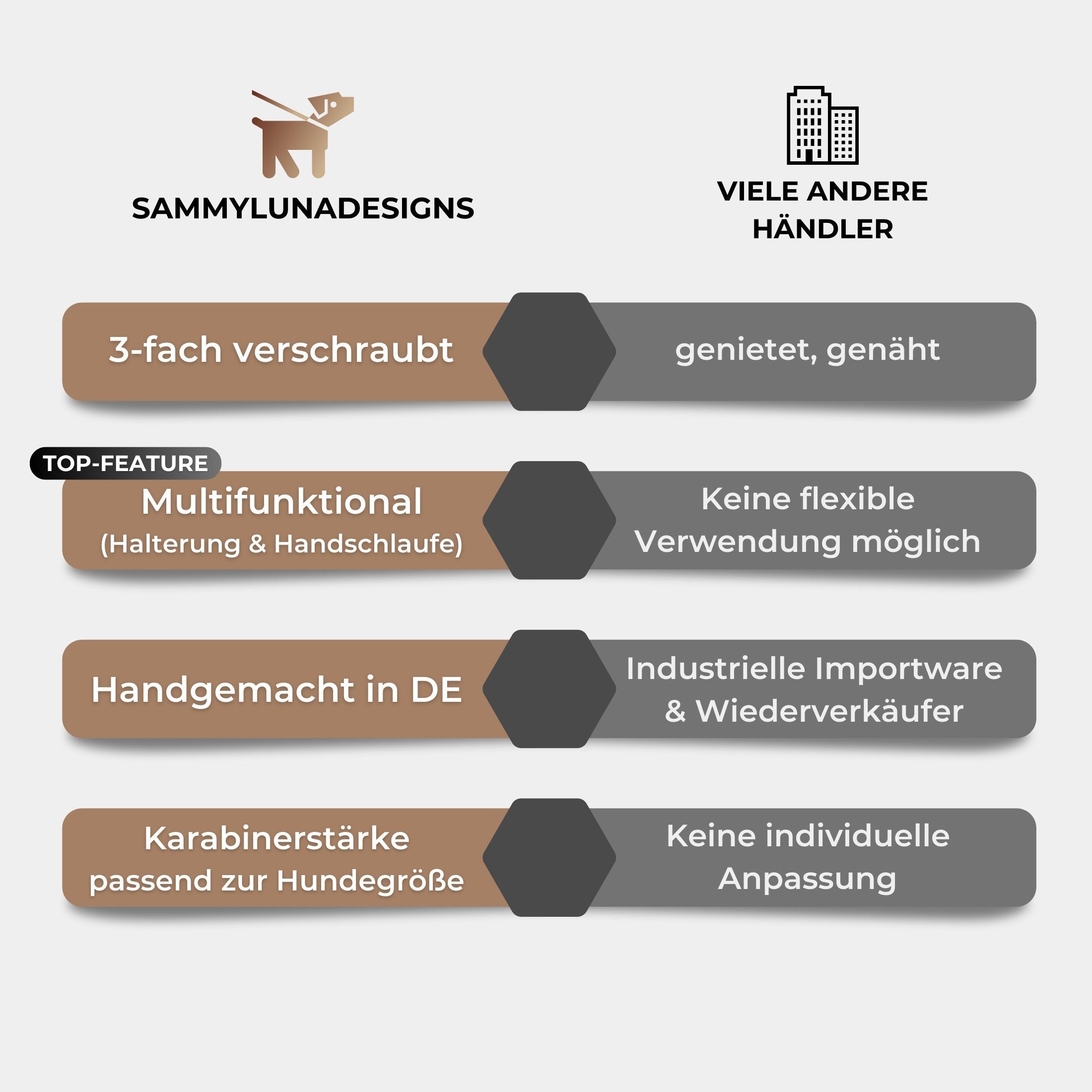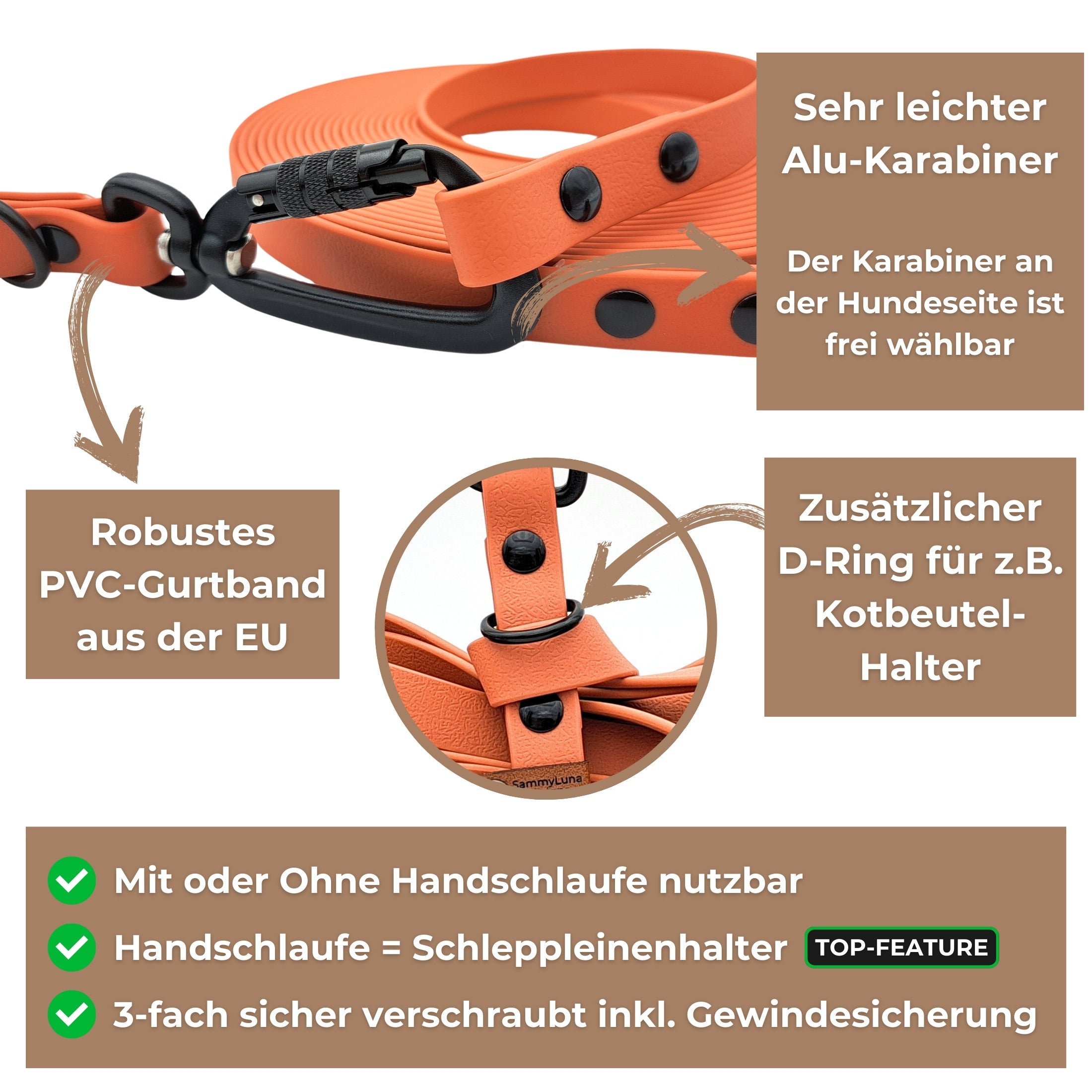 Deine Schleppleine ist bei SammyLunaDesigns so gestaltbar, wie in keinem anderen uns bekannten In-Store Geschäft.