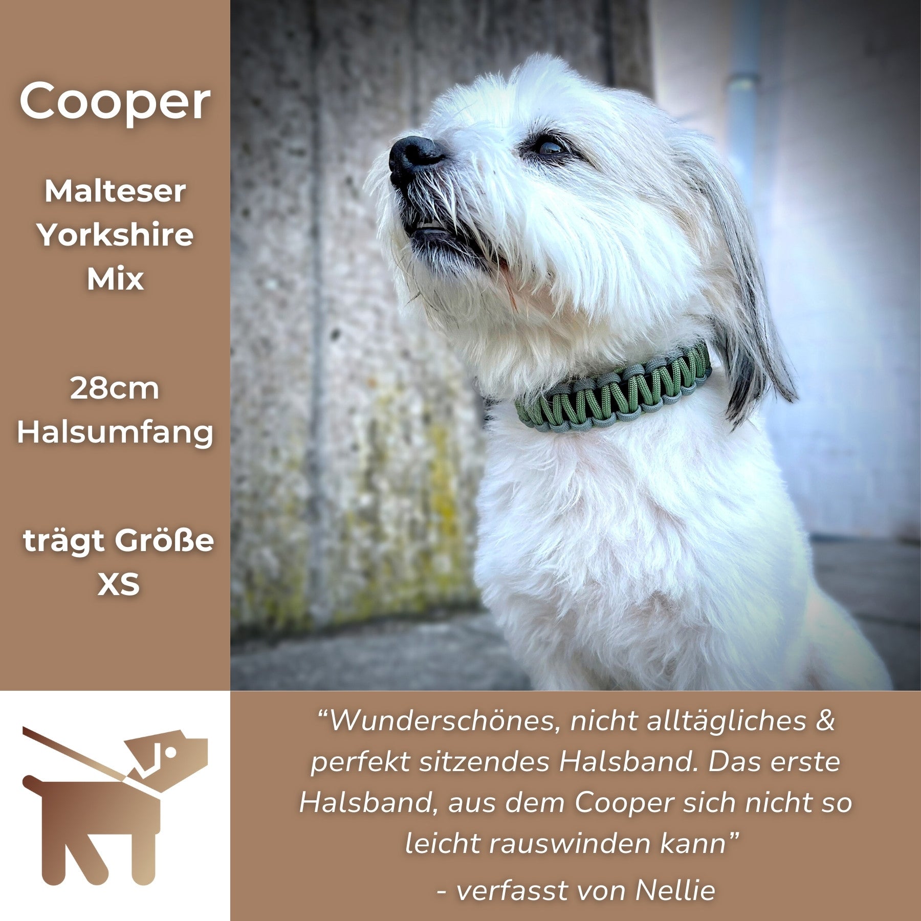 Dieses langlebige Hundehalsband wird aus hochwertiger BioThane® handgefertigt und anschließend mit zwei reißfesten Paracord-Seilen umwickelt. Dank des weichen Paracord-Seil-Mantels gewinnt das Halsband an Breite und bietet deinem Hund höchsten Tragekomfort – somit ideal für alle Hundebesitzer/-innen, die ein breites Hundehalsband suchen.
