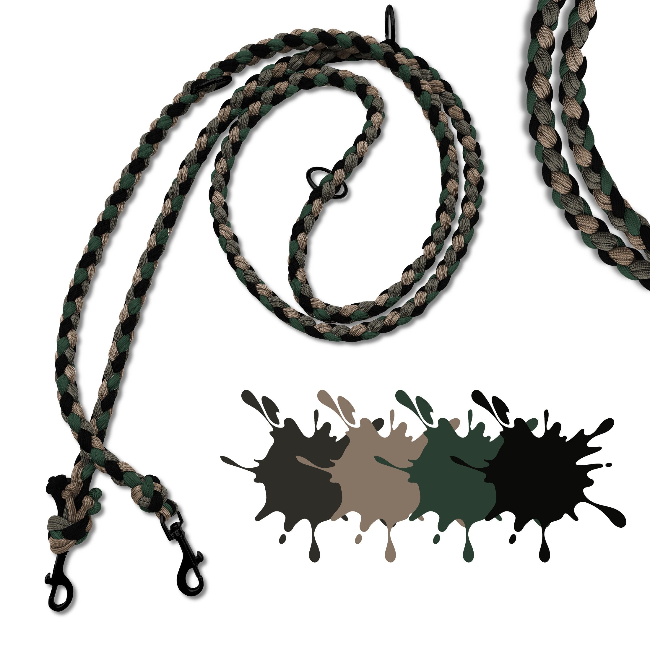Paracord-Leinen sind sehr langlebig & robust, besitzen eine Top-Seilqualität und sind jeden Cent wert. Wir verwenden eine Seilqualität in Militärstandard. In beispielsweise einer 2 Meter Leine stecken insgesamt 28 Meter Paracord verarbeitet.