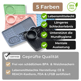 • Diese BPA-freie Schleckmatte wurde unter Einhaltung diverser Zertifizierungen hergestellt und erfüllt jegliche EU-Standards. Durch die FDA- und LFGB-Zertifizierung erhältst du ein lebensmittelechtes Silikonprodukt von höchster Qualität.