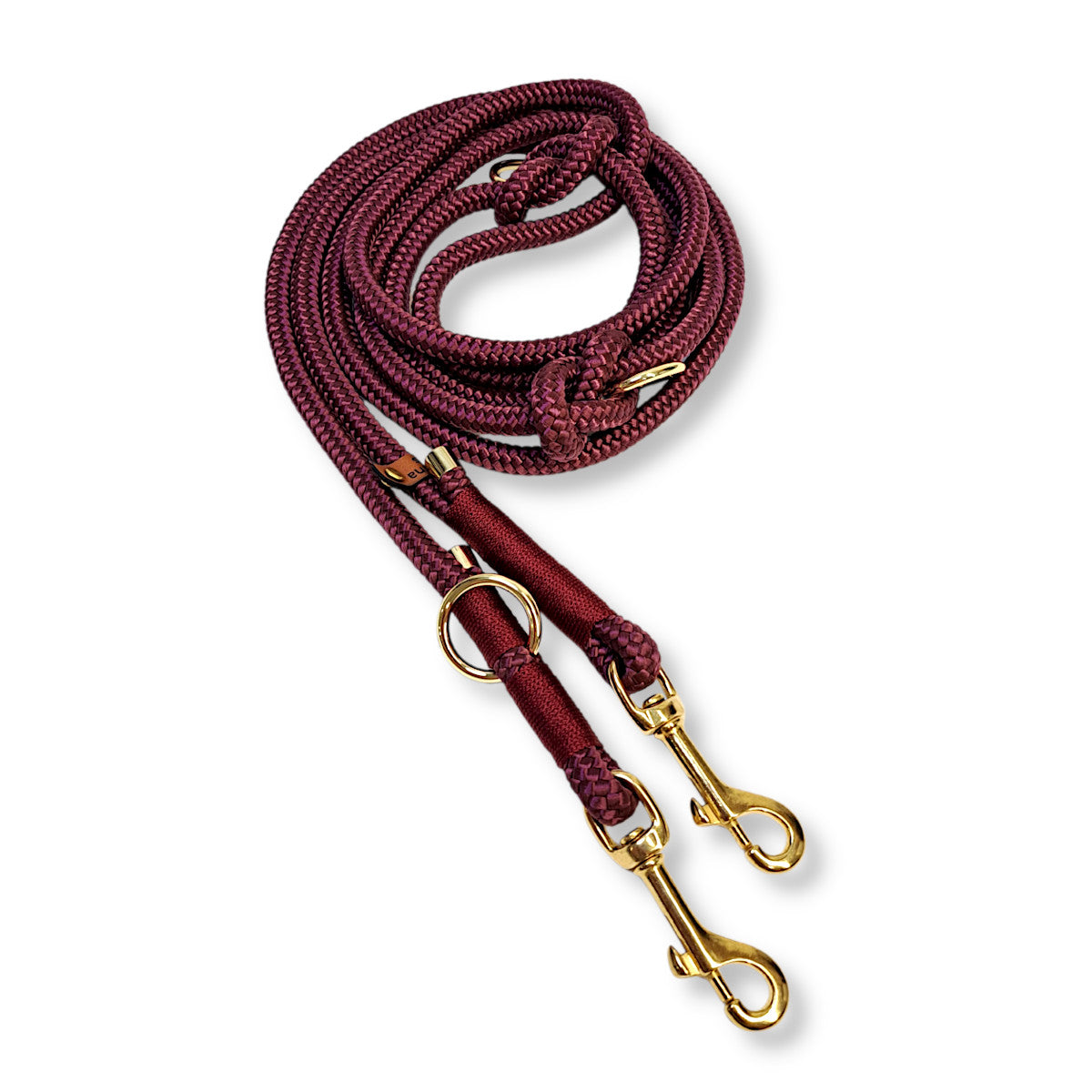 Diese Hundeleine aus Tauseil in der Farbe "Aubergine" wirkt mit den goldenen Karabinern aus echtem Messing besonders edel. Die besten Eigenschaften, die du dir vorstellen kannst bringt sie außerdem gleich mit!