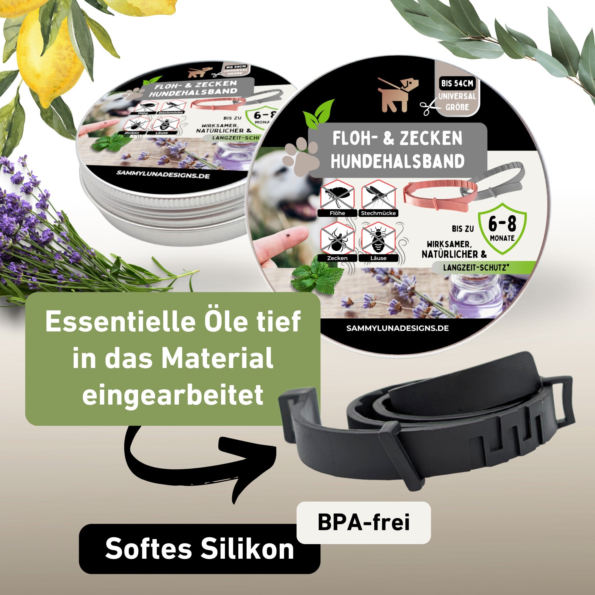 Das Zeckenhalsband für Hunde von SammyLunaDesigns bietet einen natürlichen Schutz vor Zecken, Flöhen, Stechmücken und anderen Insekten – auf Basis ätherischer Öle. Anders als bei synthetischen Wirkstoffen entfaltet dieses Halsband seine Wirkung durch eine gezielte Duftstoffabgabe direkt über die Hautoberfläche des Hundes.